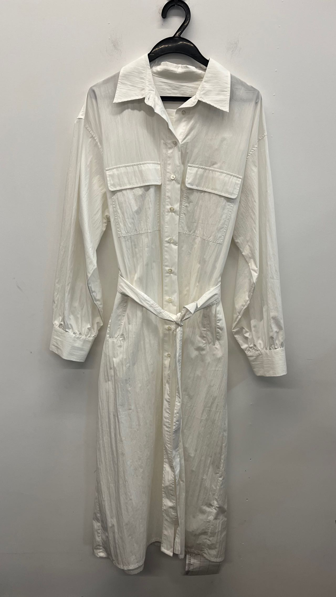 This charming shirt dress is expertly crafted from a premium blend of 56% Cotton and 44% Nylon, offering unbeatable comfort, breathability, and wrinkle resistance. Featuring a classic pointed collar, functional chest pockets, and a removable waist belt for customizable fit, this piece transitions effortlessly from office days to weekend outings. The sleek, long sleeves with cuffed wrists and maxi length design ensure a flattering, timeless silhouette perfect for every season. A versatile, must-have staple for modern women.